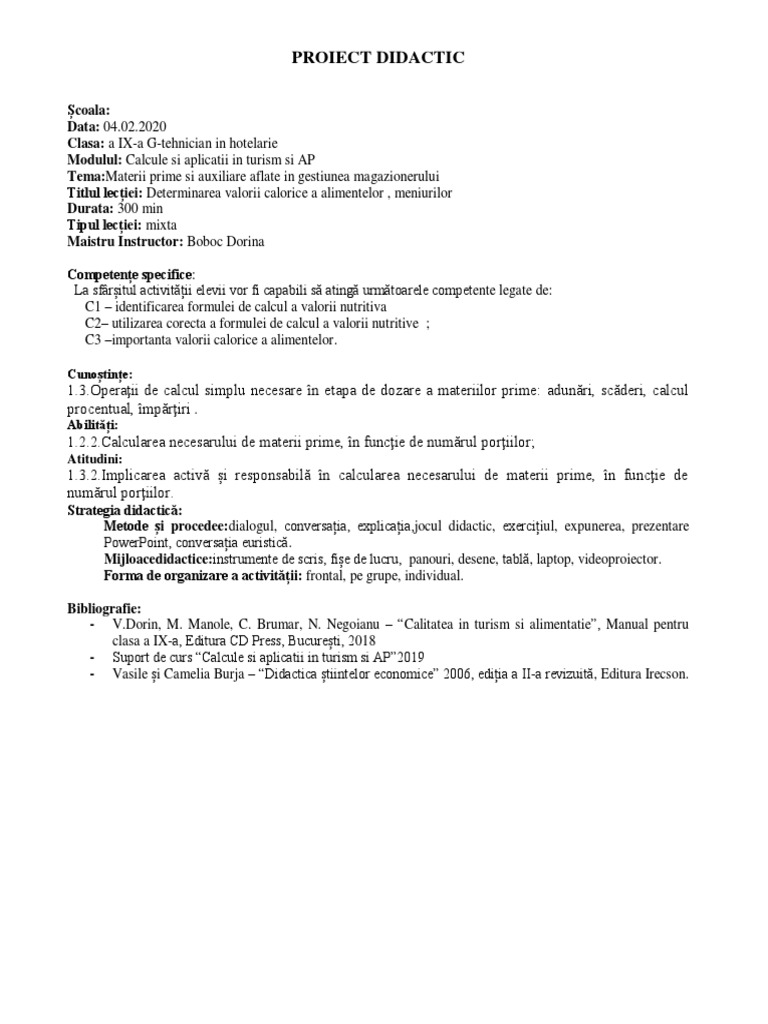 [Link] activă și responsabilă în calcularea necesarului de materii prime, în funcţie de