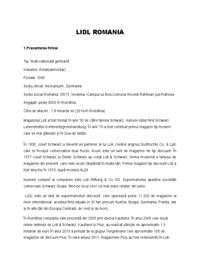 Numele complet al companiei este Lidl Stiftung & Co KG. Supermarketul aparține societății