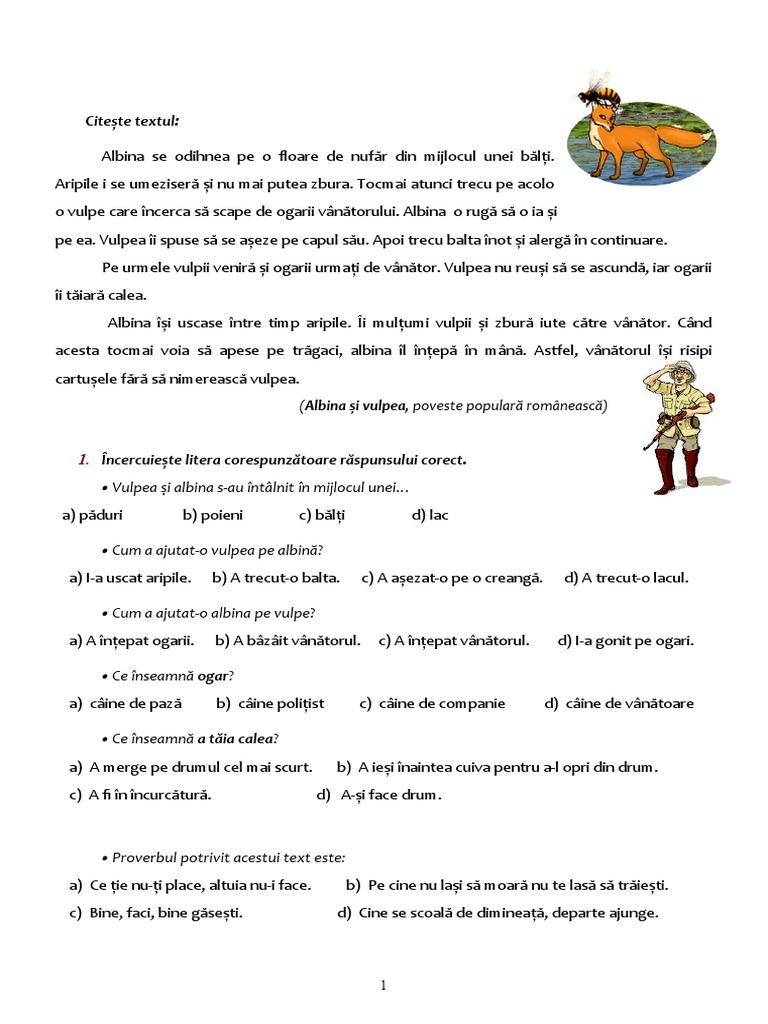2. Unde ai văzut o vulpe? 5. Pentru ce este vânată?