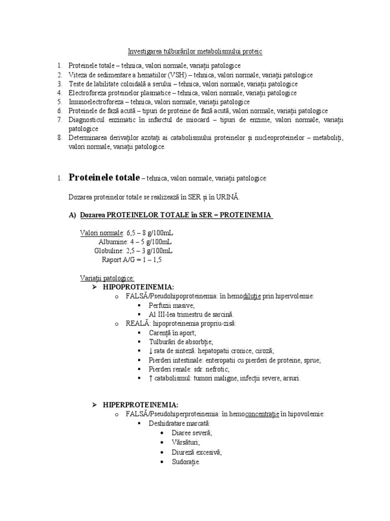 1. Proteinele totale – tehnica, valori normale, variații patologice: