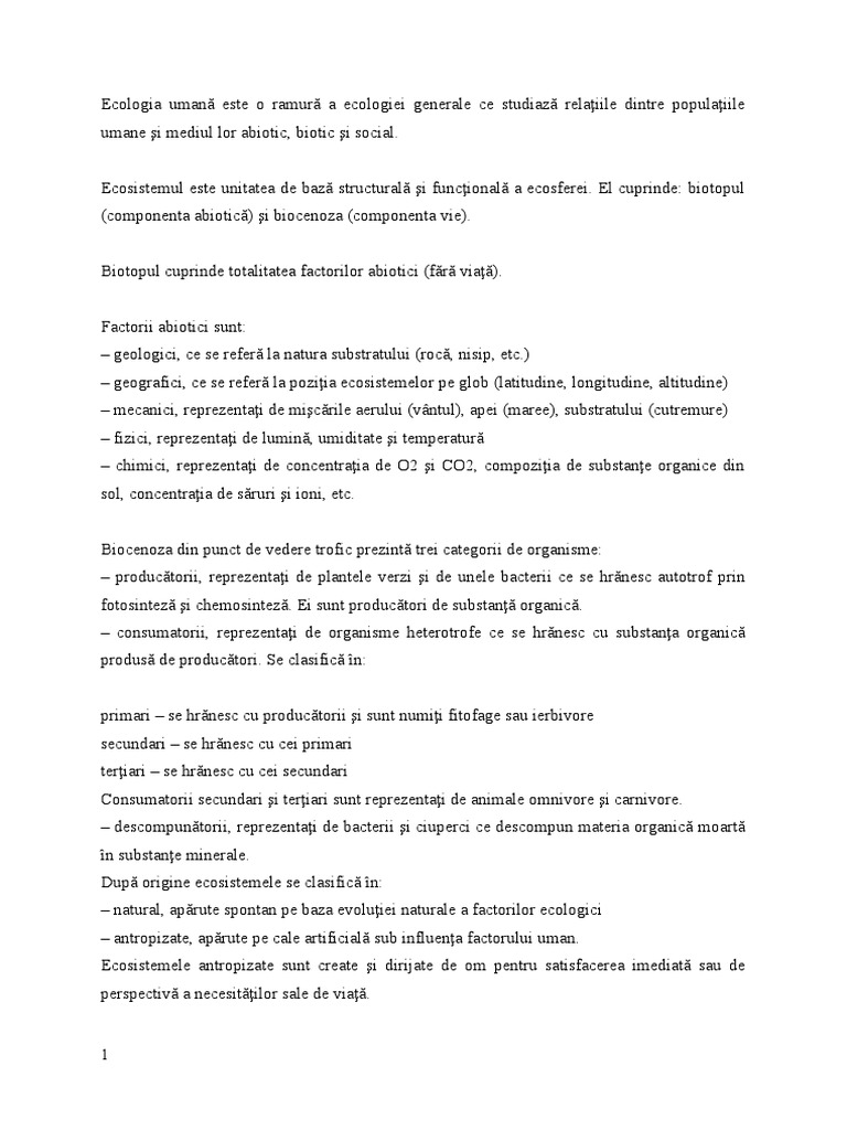 umane şi mediul lor abiotic, biotic şi social.