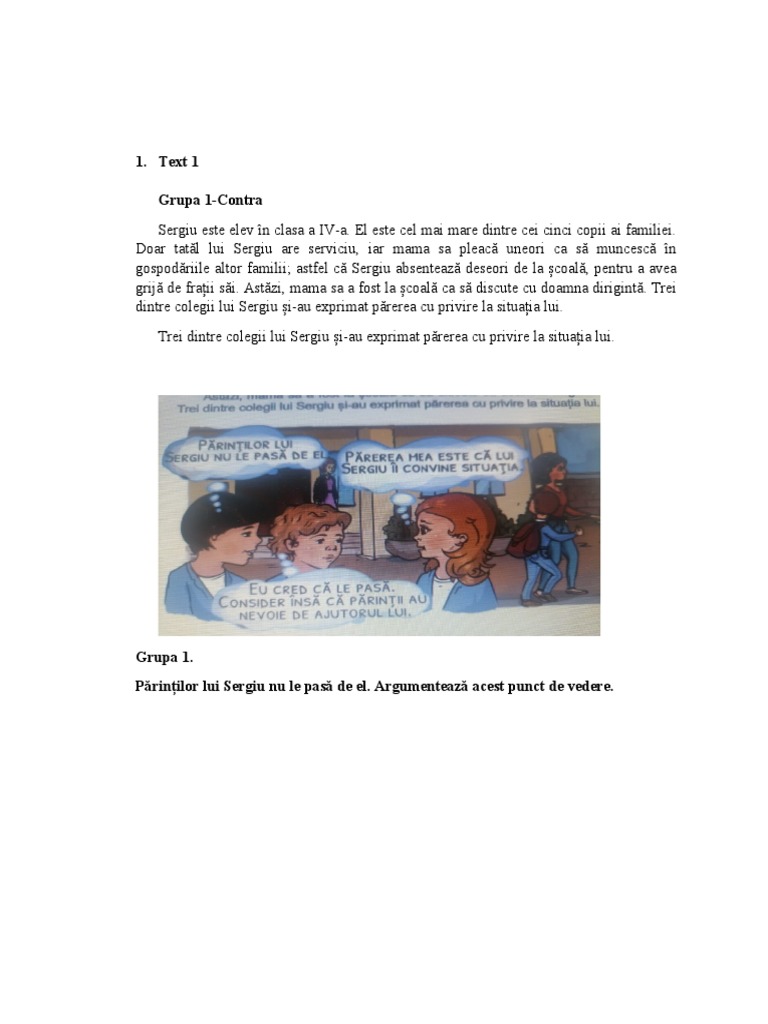 Părinților lui Sergiu nu le pasă de el. Argumentează acest punct de vedere.