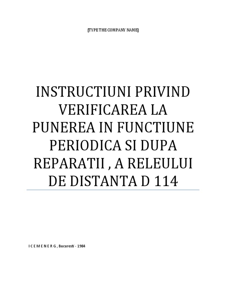 foarte inalta tensiune , cu neutral legat direct la pamant. Releul de distanta D 114 a fost obtinut