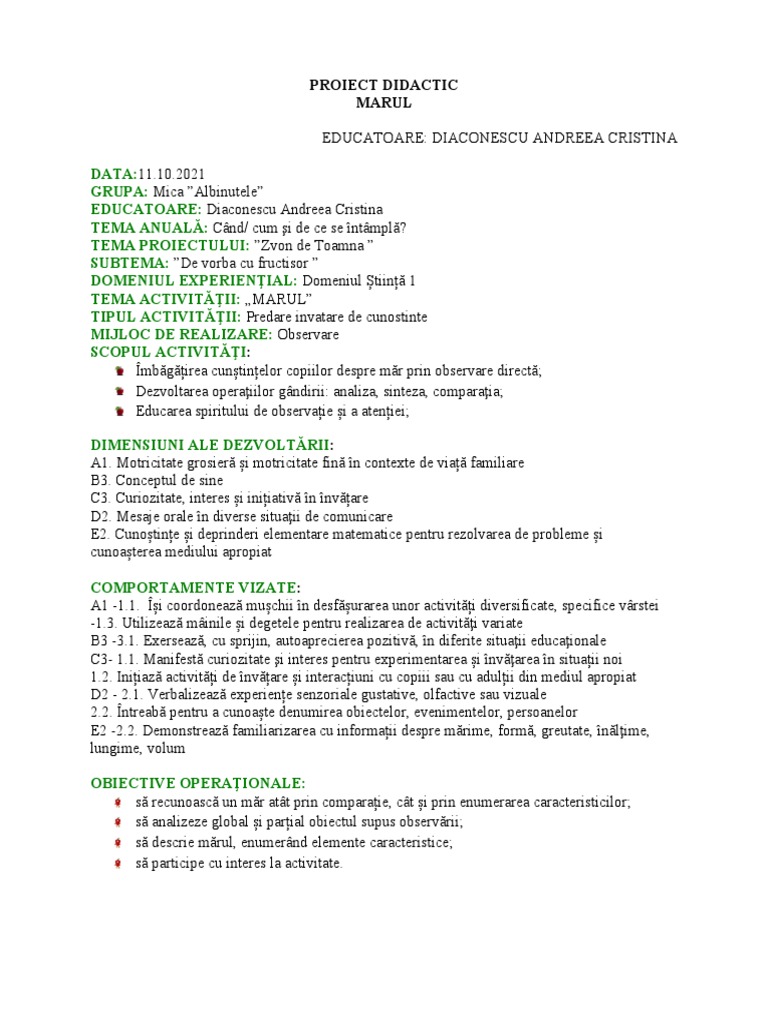 EDUCATOARE: DIACONESCU ANDREEA CRISTINA