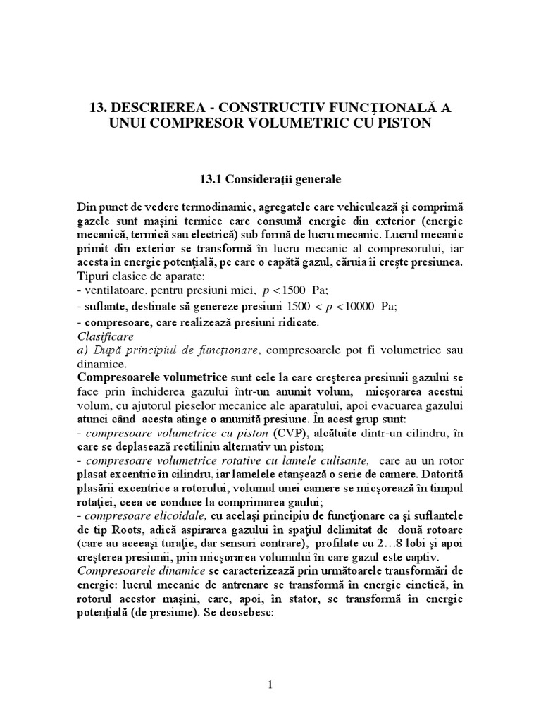 13.3 Funcţionarea compresor volumetric cu piston