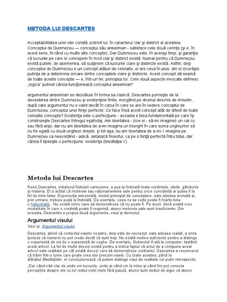 articol este realitate pe cât există dovezi care să demonstreze contrariul. Descartes a recunoscut
