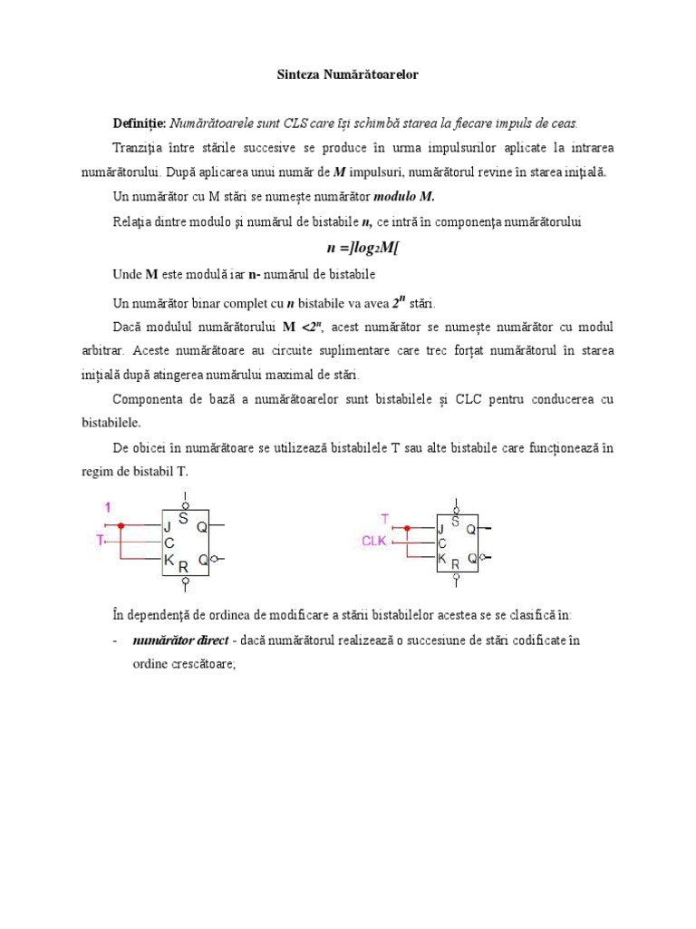 Definiție: Numărătoarele sunt CLS care își schimbă starea la fiecare impuls de ceas.