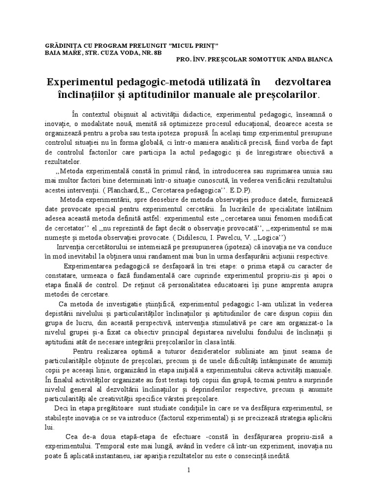 Ca metoda de investigatie științifică, experimentul pedagogic l-am utilizat în vederea