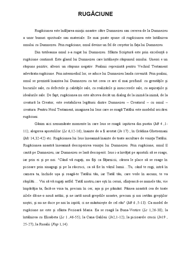 noștri; și nu ne duce pe noi în ispită, ci ne mântuiește de cel rău" (Mt 6 ,5-13). Ca model de