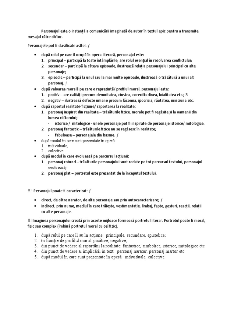 !!! Personajul poate fi caracterizat: