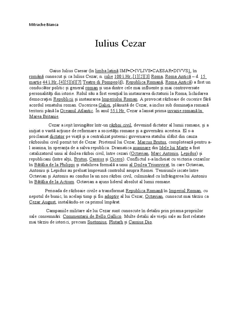 al romanilor.” Mulţimea a aprobat imediat acţiunile lui Cezar.