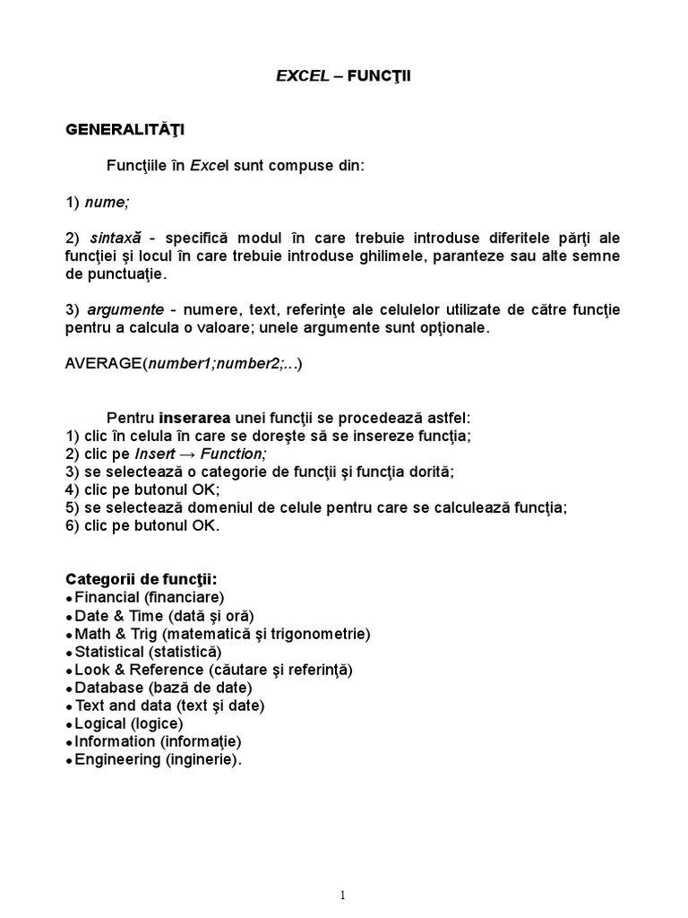 EXCEL – FUNCŢII