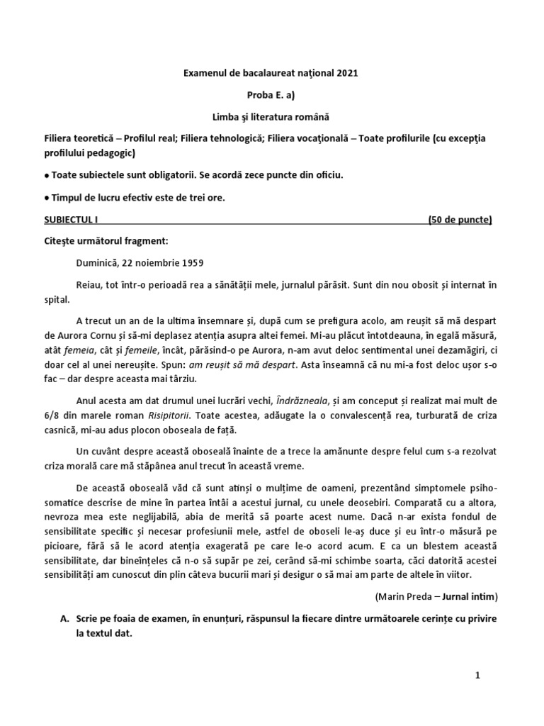 SUBIECTUL I (50 de puncte)