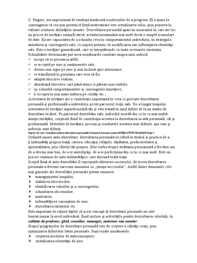 Suport de curs: Consilier pentru dezvoltare personală , Formator Roxana Axinte INTERACTIVE TRAINING Page 7
