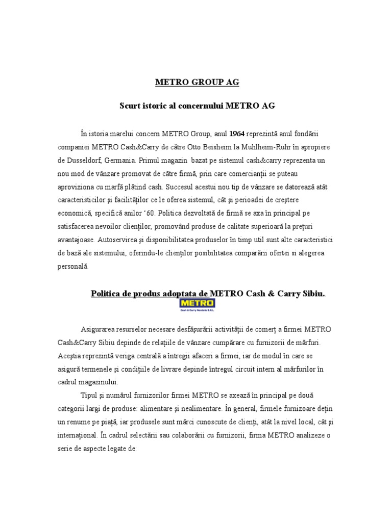 Politica de produs adoptata de METRO Cash & Carry Sibiu..