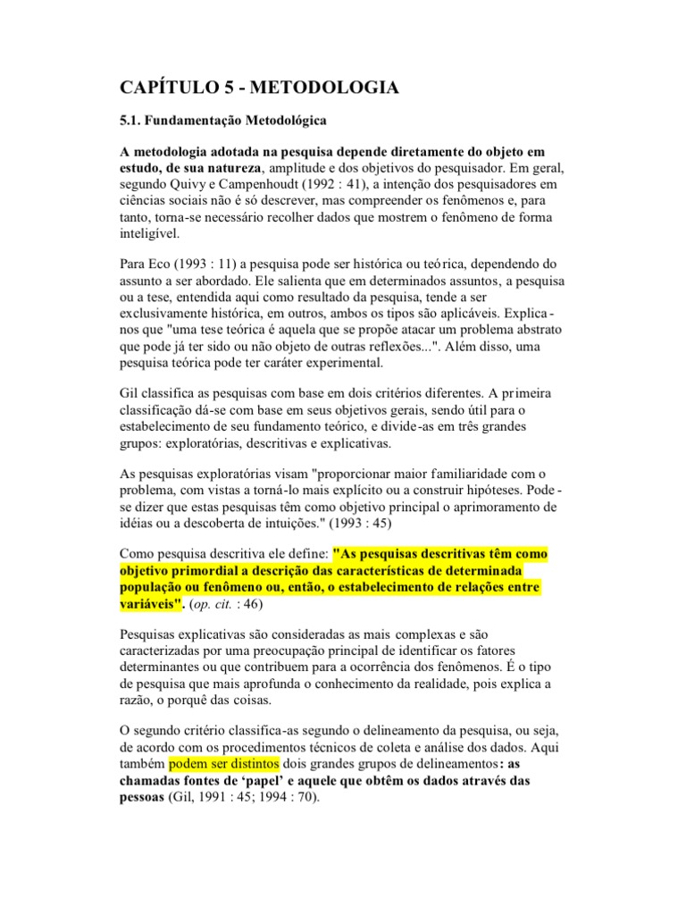 Para Eco (1993 : 11) a pesquisa pode ser histórica ou teó rica, dependendo do