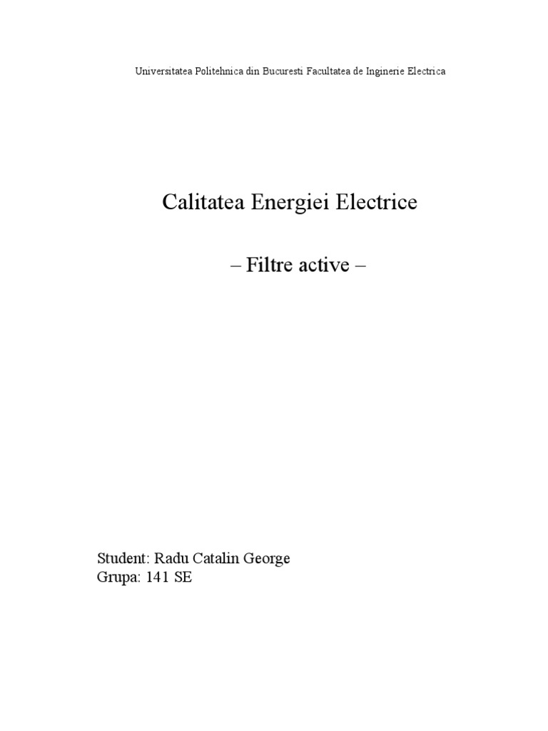 Universitatea Politehnica din Bucuresti Facultatea de Inginerie Electrica