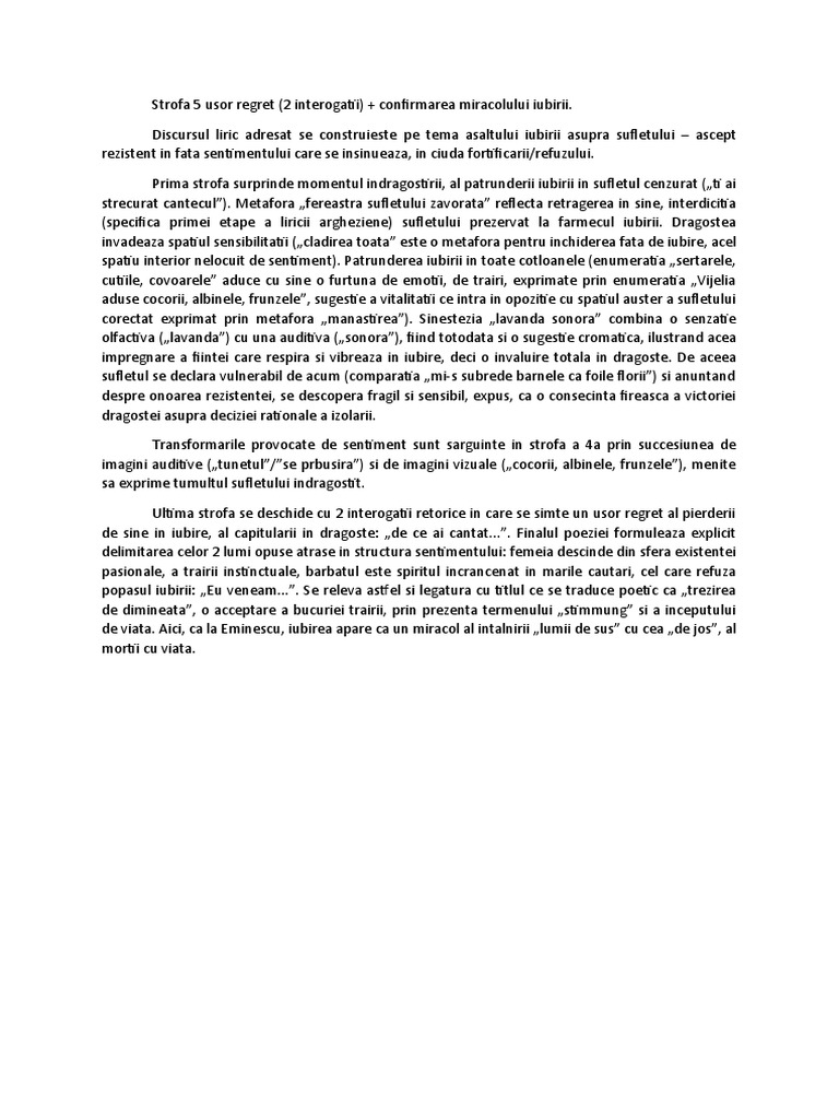 Strofa 5 usor regret (2 interogatii) + confirmarea miracolului iubirii.