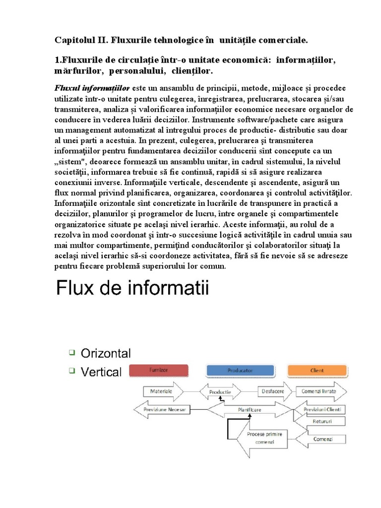Capitolul II. Fluxurile tehnologice în unitățile comerciale.