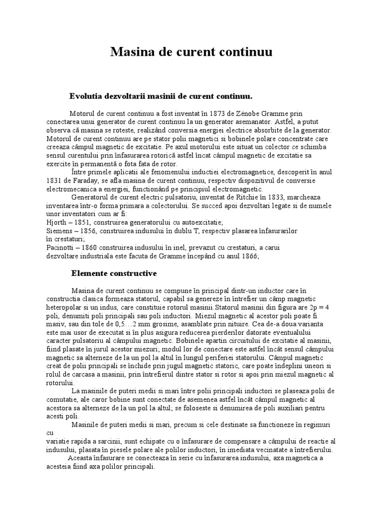 Evolutia dezvoltarii masinii de curent continuu.