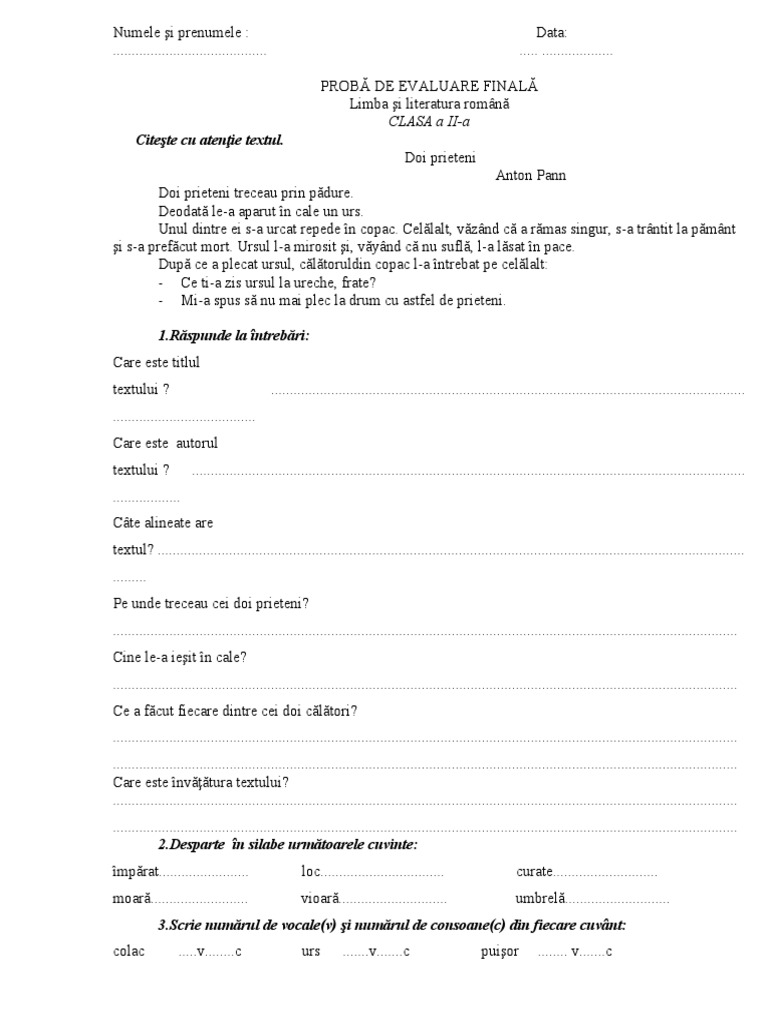 Numele şi prenumele : Data: