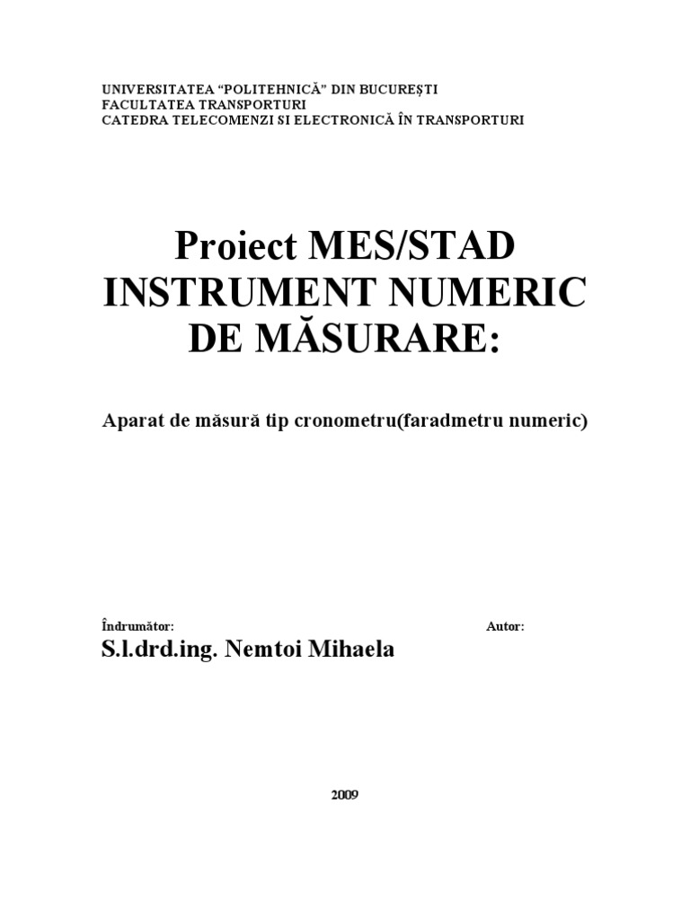 Aparat de măsură tip cronometru(faradmetru numeric)