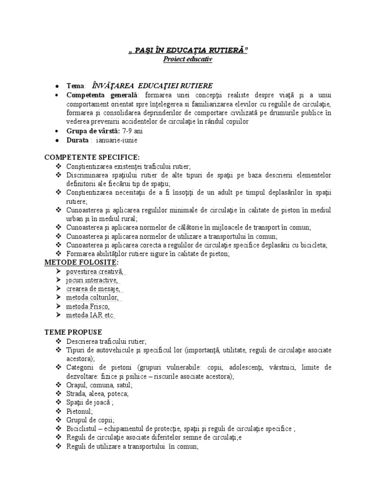 la trafic cunoscând şi respectând regulile proiectului