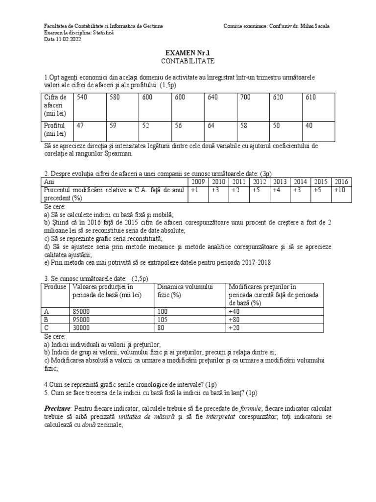Facultatea de Contabilitate si Informatica de Gestiune Comisie examinare: [Link].