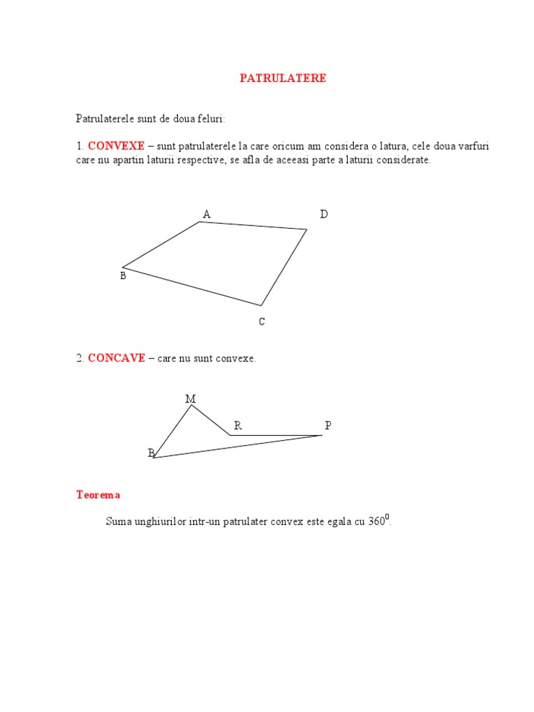 1. CONVEXE – sunt patrulaterele la care oricum am considera o latura, cele doua varfuri