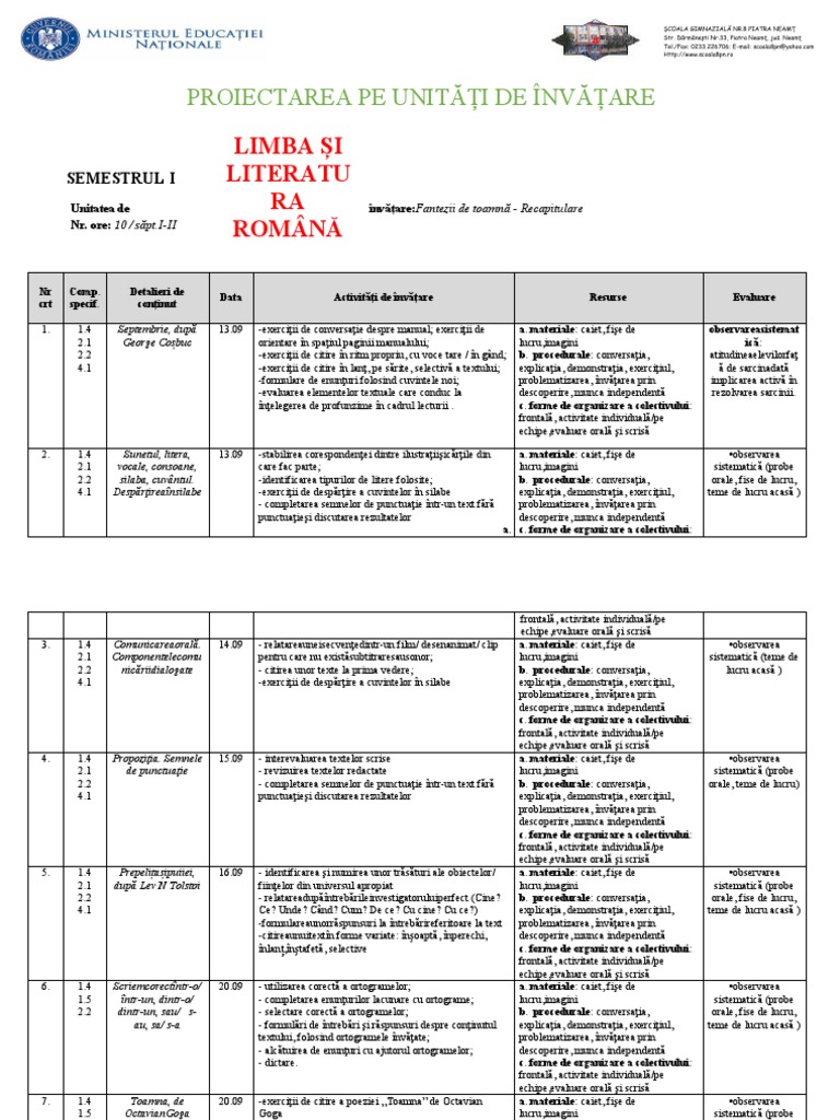Data Activități de învățare Resurse Evaluare
