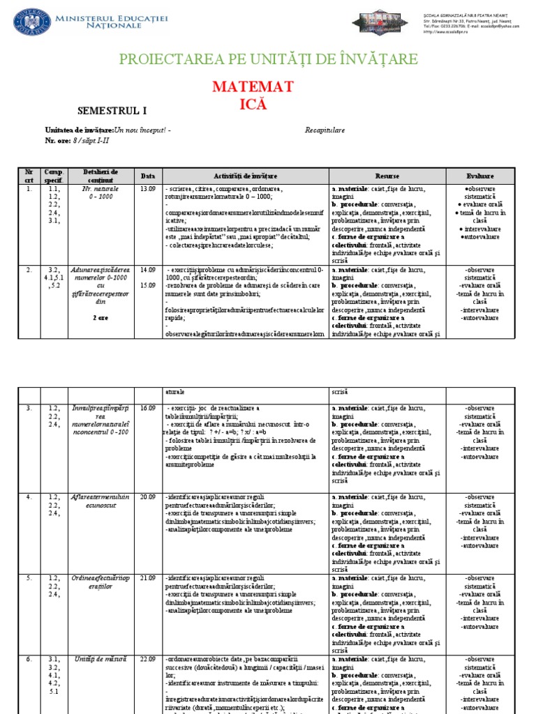 2 naturale 0-10.000 28.09 - numărare crescătoare şi descrescătoare din 1 în 1, din 2 b. procedurale: conversaţia, -evaluare orală