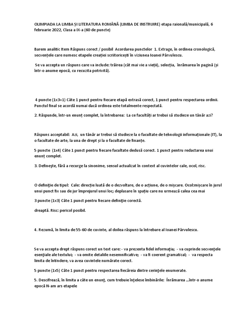 Barem analitic Item Răspuns corect / posibil Acordarea punctelor 1. Extrage, în ordinea cronologică,
