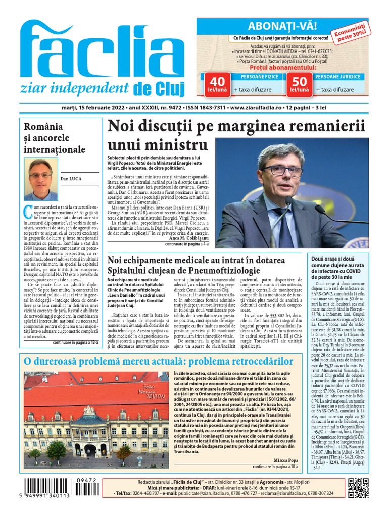 marți, 15 februarie 2022 • anul XXXIII, nr. 9472 • ISSN 1843-7311 • [Link] • 12 pagini – 3 lei