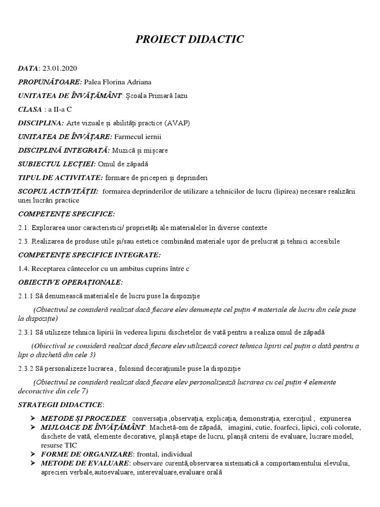 PROIECT DIDACTIC