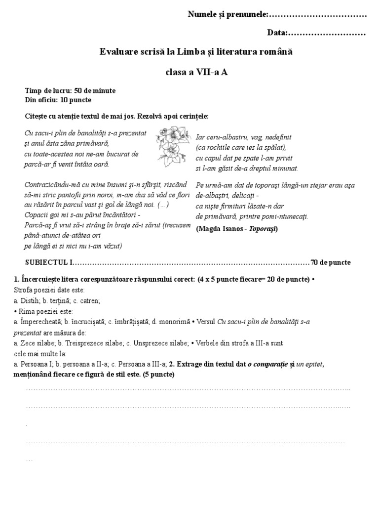 II-lea……………………………………………………………………………. 20 de puncte 1. Redactează o