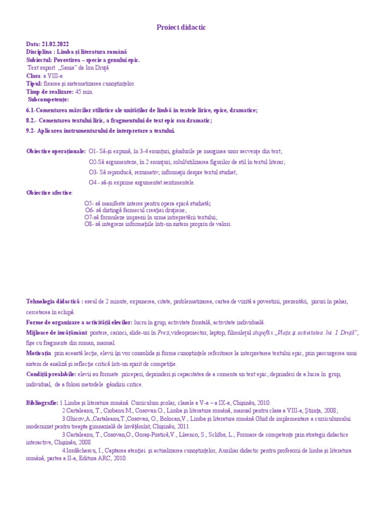 Bibliografie: [Link] şi literatura română. Curriculum şcolar, clasele a V-a – a IX-a; Chişinău, 2010.