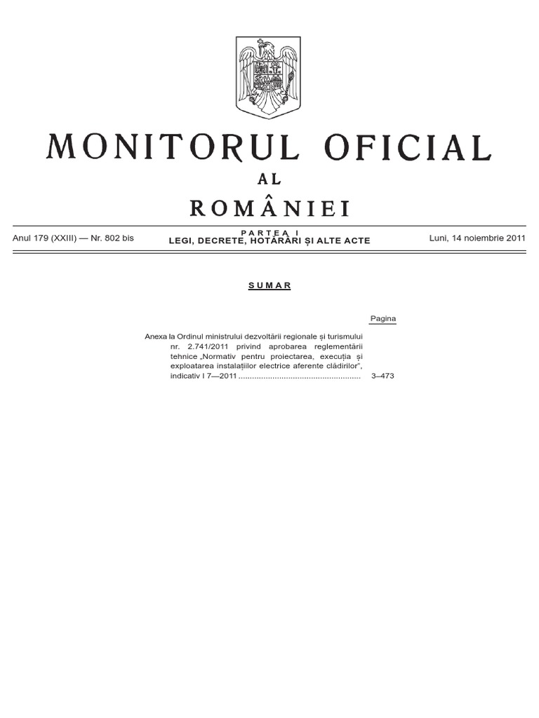 instalațiilor electrice aferente clădirilor”, indicativ I 7—2011*)