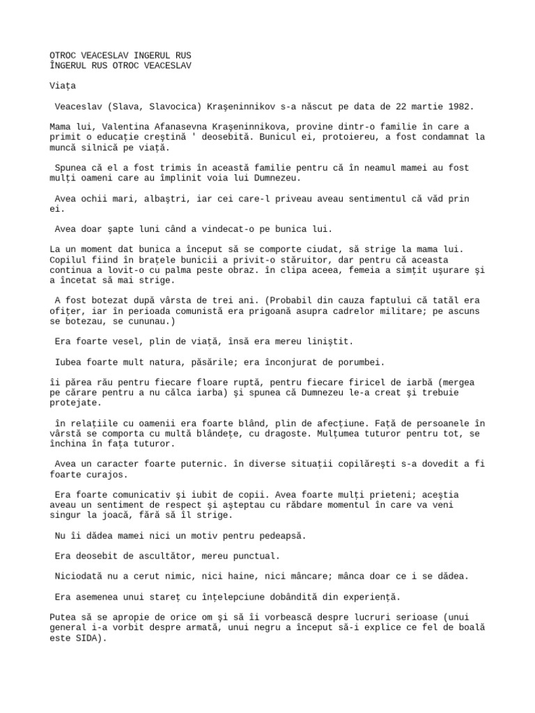 Veaceslav (Slava, Slavocica) Kraşeninnikov s-a născut pe data de 22 martie 1982.