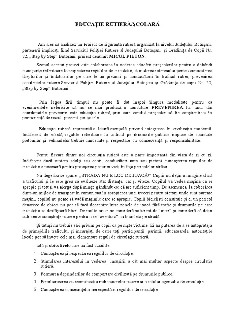 22, „Step by Step” Botoșani, proiect denumit MICUL PIETON.