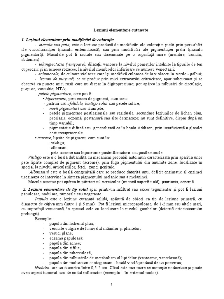 - vezicula este o leziune cu un conţinut clar, cu diamentru sub 0,5 cm; apare în eczeme,