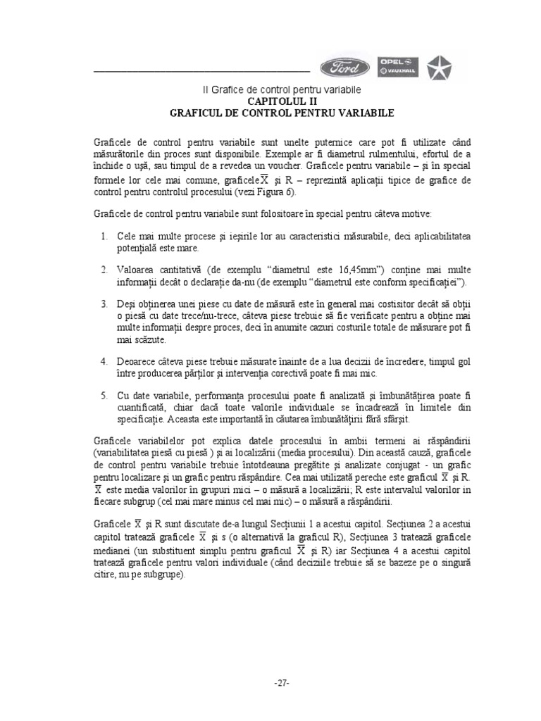 formele lor cele mai comune, graficele X şi R – reprezintă aplicaţii tipice de grafice de