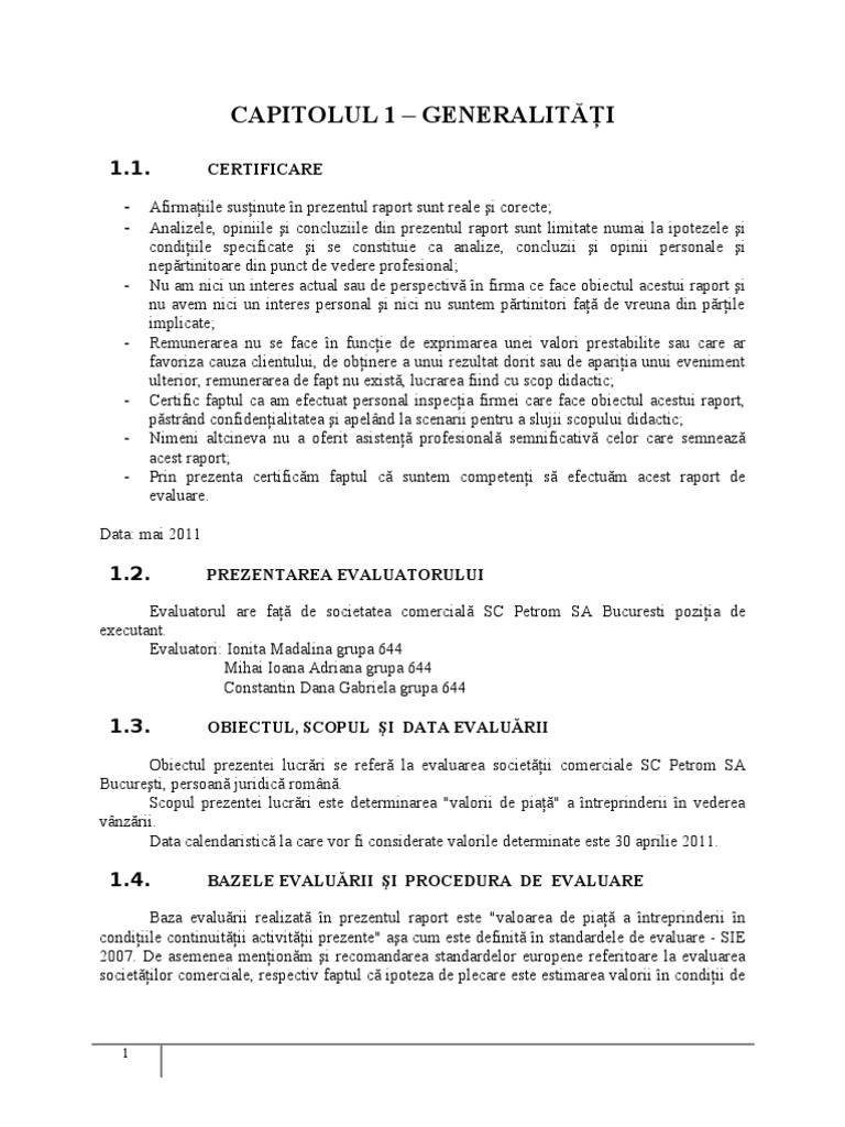 S.C. DDC S.R.L. Bucureşti, urmând a fi folosit pentru stabilirea valorii de piata a întreprinderii.