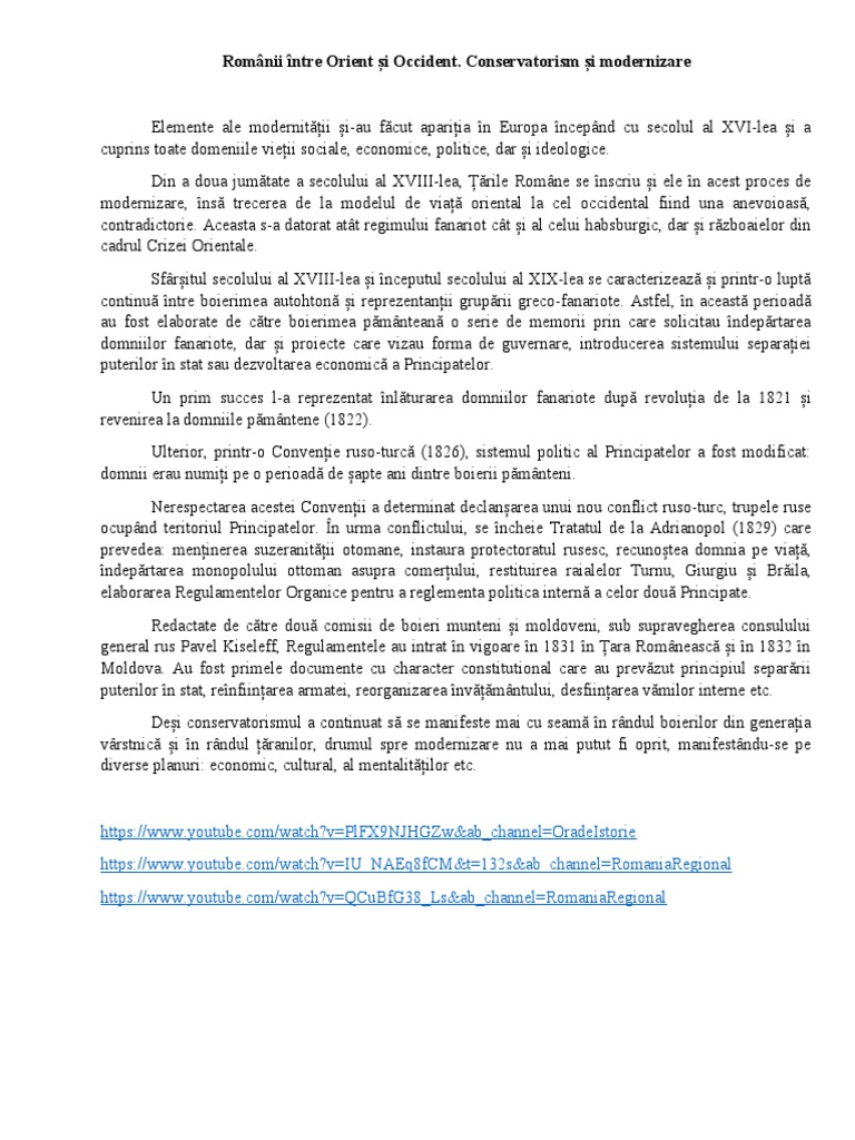 au legitimat aspirațiile politice prin argumente istorice. Restabilirea autonomiei Principatelor a