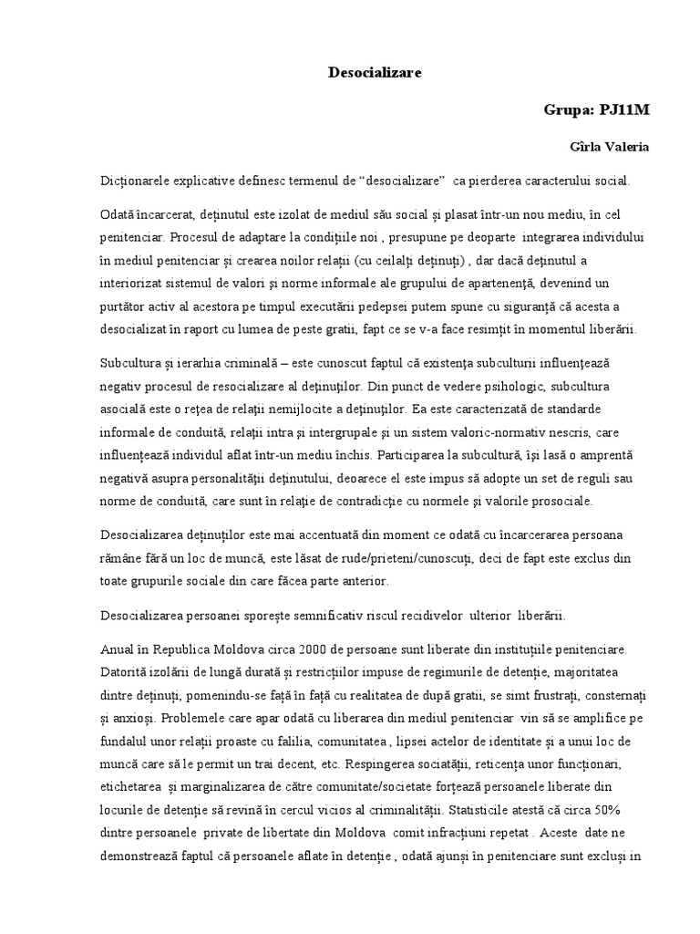 Dicționarele explicative definesc termenul de “desocializare” ca pierderea caracterului social.