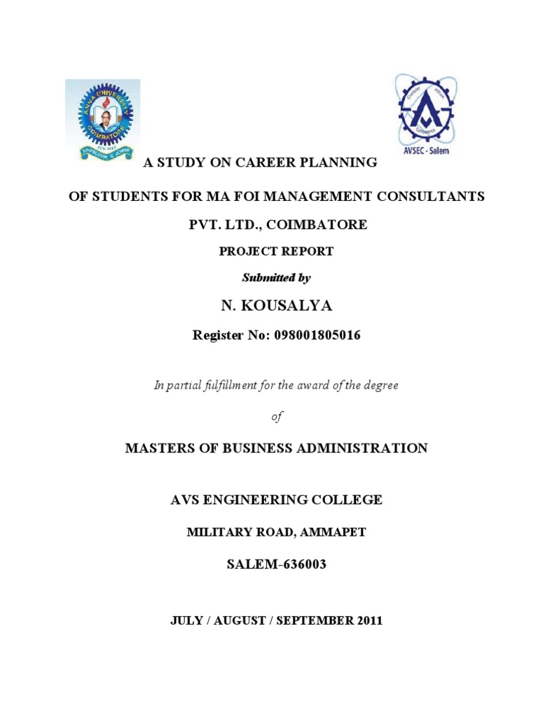 being submitted in partial fulfilment for the award of Master of Business Administration
