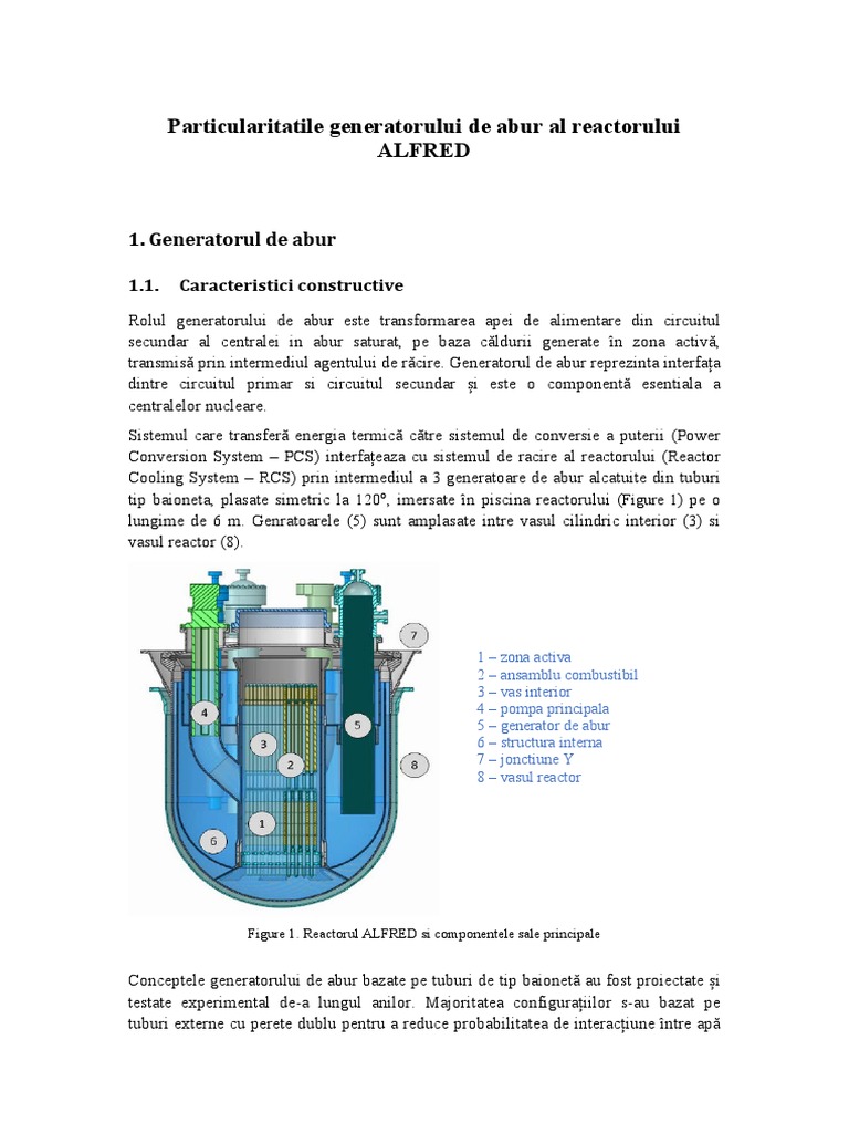 Tabelul 1. Parametrii principali ai generatorului de abur ALFRED