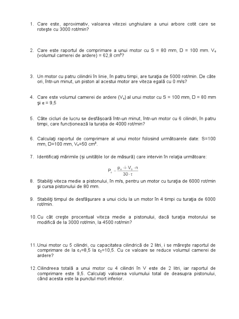 6. Calculaţi raportul de comprimare al unui motor folosind următoarele date: S=100