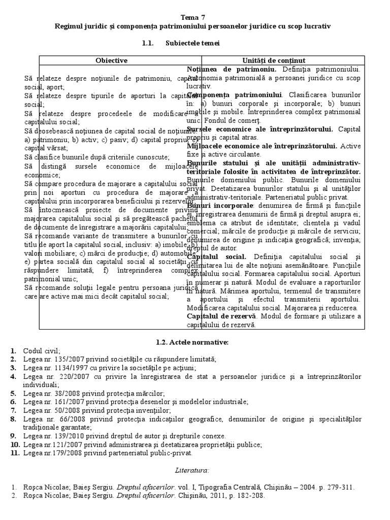 manuale şi alte cărţi dedicate subiectului „Patrimoniul persoanei juridice cu scop lucrativ” (cu preferinţă în