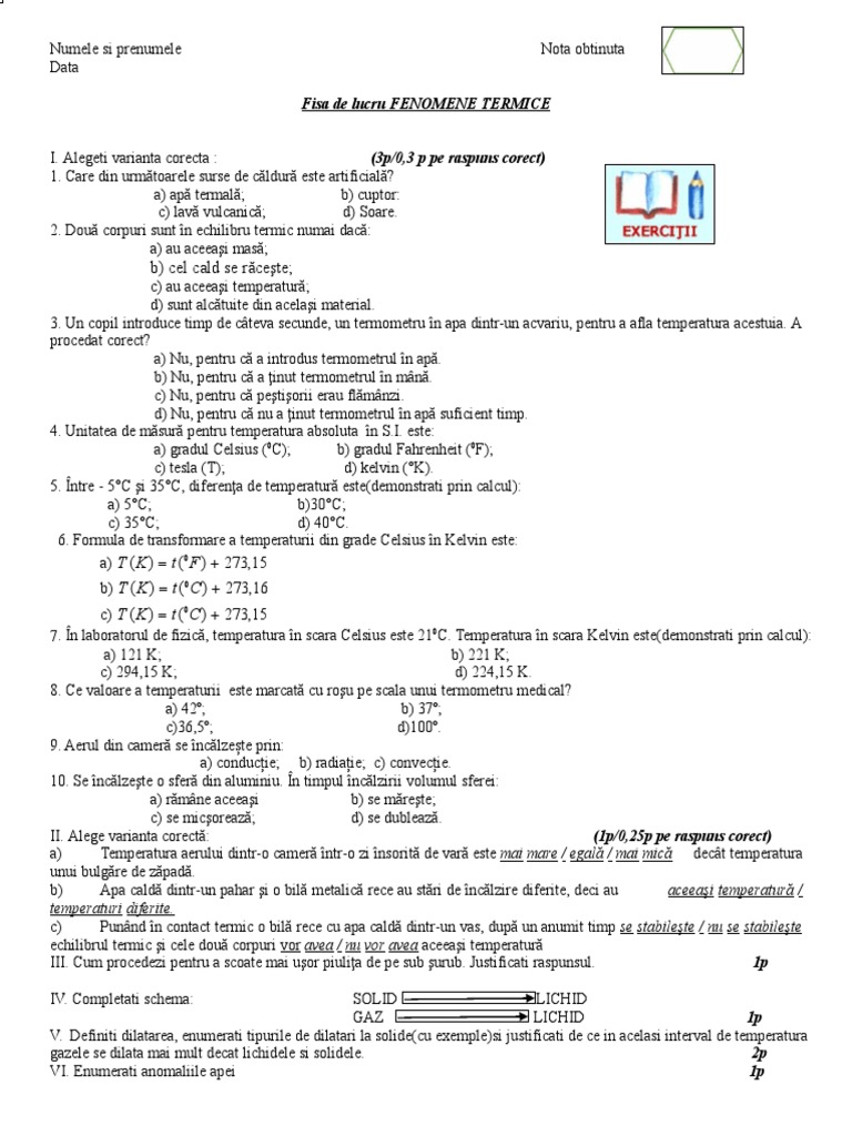 5. Între - 5°C şi 35°C, diferenţa de temperatură este(demonstrati prin calcul):