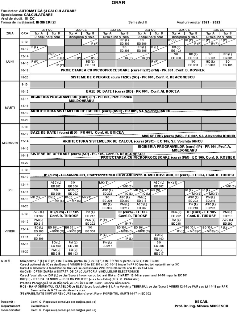 NOTĂ Sala pentru IP (L) si IP (P) este EG 304, pentru IC (L) si IC(P) este PR 703 si pentru MK (s) este EG 303